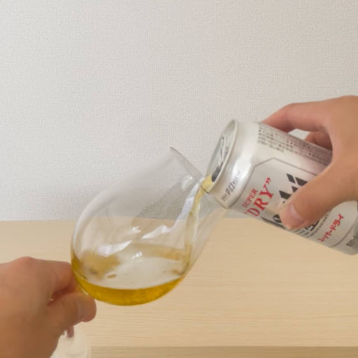 気になって、近所のコンビニで買った缶だけで試してみました。特別な道具はなし。頼れるのはグラス、注ぎ方、そして少しの“待ち”だけ。